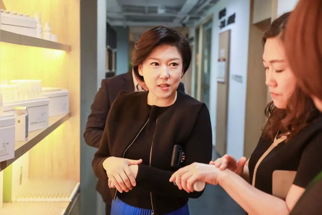 金俊熙教授和金渊帧教授饶有兴趣地参访了塑青春总部以及杭州滨江天街直营店。在塑青春总部,杨总详细介绍了塑青春这些年来在服务项目优化、产品系列研发、设备技术创新等方面的成果,获得了金俊熙教授的高度认可,金教授表示:“塑青春的仪器设备、产品技术等方面是水平已经非常接近韩国顶尖美容机构了,在某些方面甚至有所领先。”